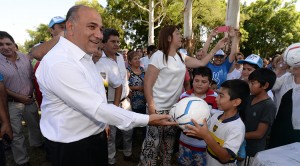 En Alberdi junto a los vecinos inauguramos este espacio que será utilizado por todo el pueblo y en poco tiempo se va a transformar en un gran polideportivo. El Municipio con recursos propios está invirtiendo en beneficios para la zona”, afirmó el Primer Mandatario, que además dijo que “el gran desafío es redoblar los esfuerzos fundamentalmente en los pueblos del interior”.