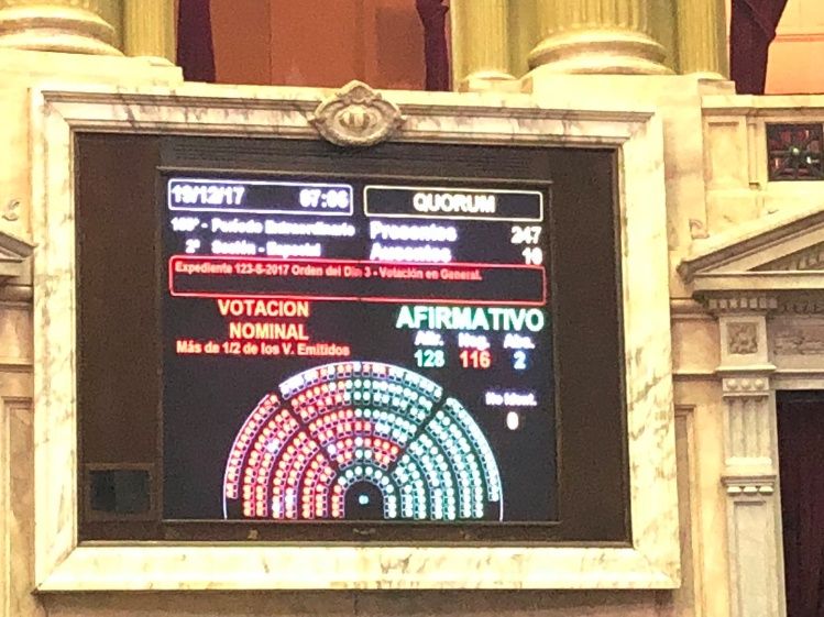 Inicialmente eran 128 los apoyos al proyecto, en la votación nominal, pero la diputada jujeña Carolina Moisés (del Frente para la Victoria) argumentó que se equivocó al tocar el botón para manifestar su posición, de modo que fueron 127 los respaldos a la propuesta.