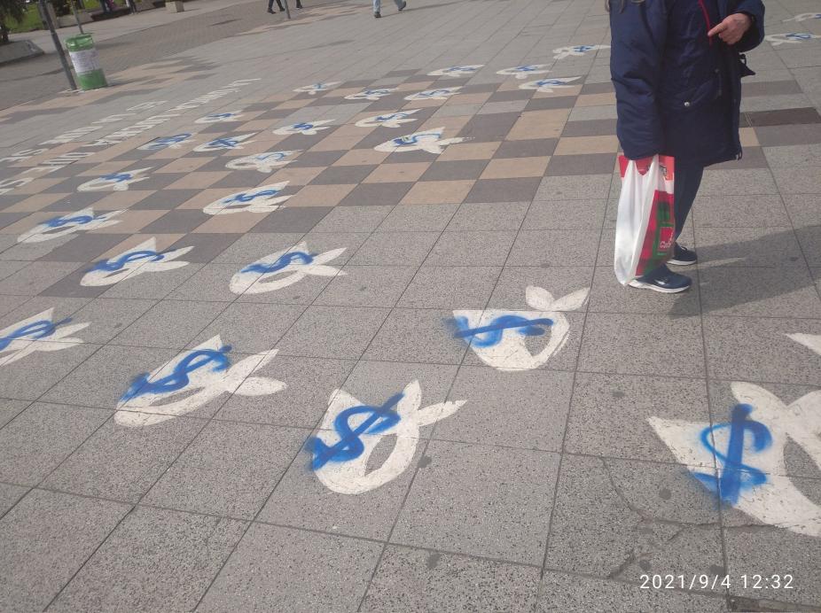 Signos de peso ($) fueron dibujados con aerosol sobre los simbólicos pañuelos de Abuelas y Madres de Plaza de Mayo como acto de vandalismo.