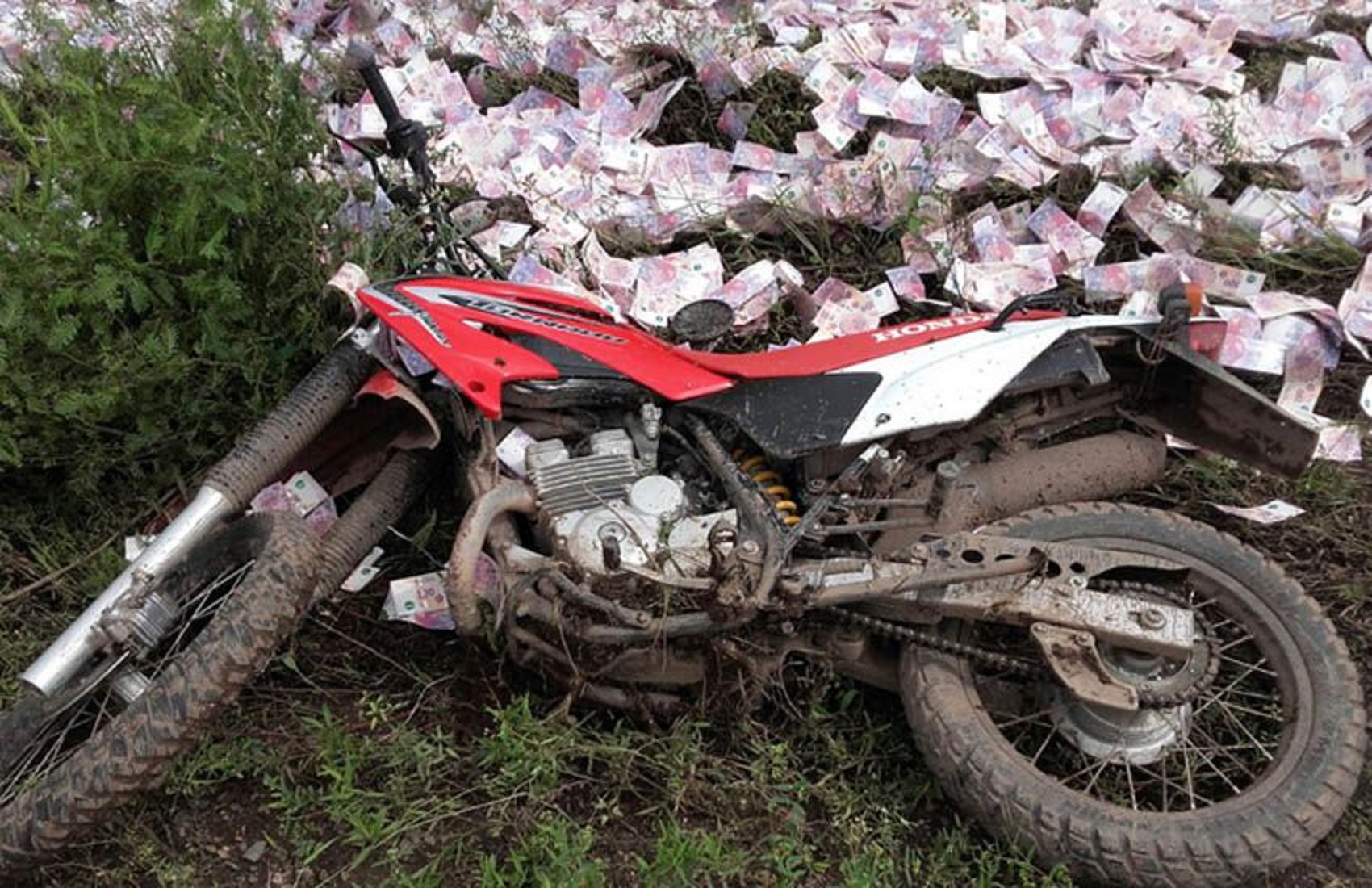A los pocos minutos, una camioneta de Gendarmería sorprendió cerca del ingreso de la ruta que va a Garmendia a dos de los cuatro asaltantes. Los gendarmes fueron atacados a balazos cuando intentaron detenerlos. Entonces, la camioneta de la fuerza federal embistió a los sospechosos, que quedaron tirados a la vera del camino y más de $ 2, 8 millones en billetes de diferente denominación, desparramados por el campo. El resto del botín, según confirmaron fuentes judiciales, habría quedado en poder de los otros dos asaltantes que huyeron en la otra moto.