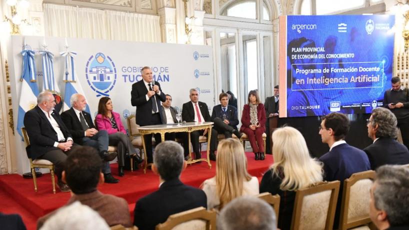El Gobierno de Tucumán presentó oficialmente el Programa de Formación Docente en Inteligencia Artificial, convirtiéndose en la primera provincia de la Argentina en implementar una estrategia educativa de este alcance. El lanzamiento se realizó en un acto en el Salón Blanco de la Casa de Gobierno, encabezado por el gobernador Osvaldo Jaldo, con la presencia de funcionarios, docentes y referentes del ecosistema tecnológico local y nacional.