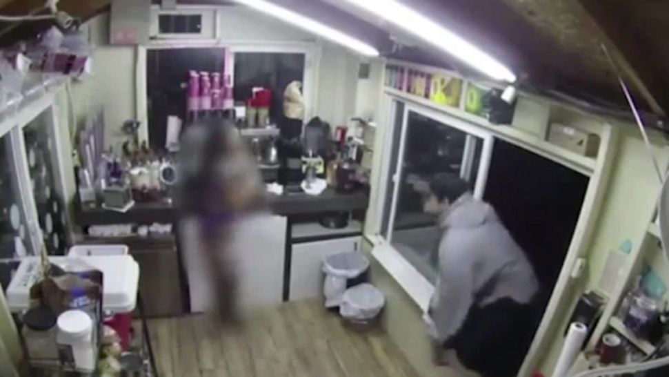 Una cámara de vigilancia de una cafetería de Kent, mostró como Michael Reynolds, de 33 años, se acercó a la ventana del bar y pidió un café. El hombre aprovechó que era de madrugada y no había nadie alrededor, para entrar por la ventana y amenazar a Madeline Guinto, la barista de 30 años, con un cuchillo.