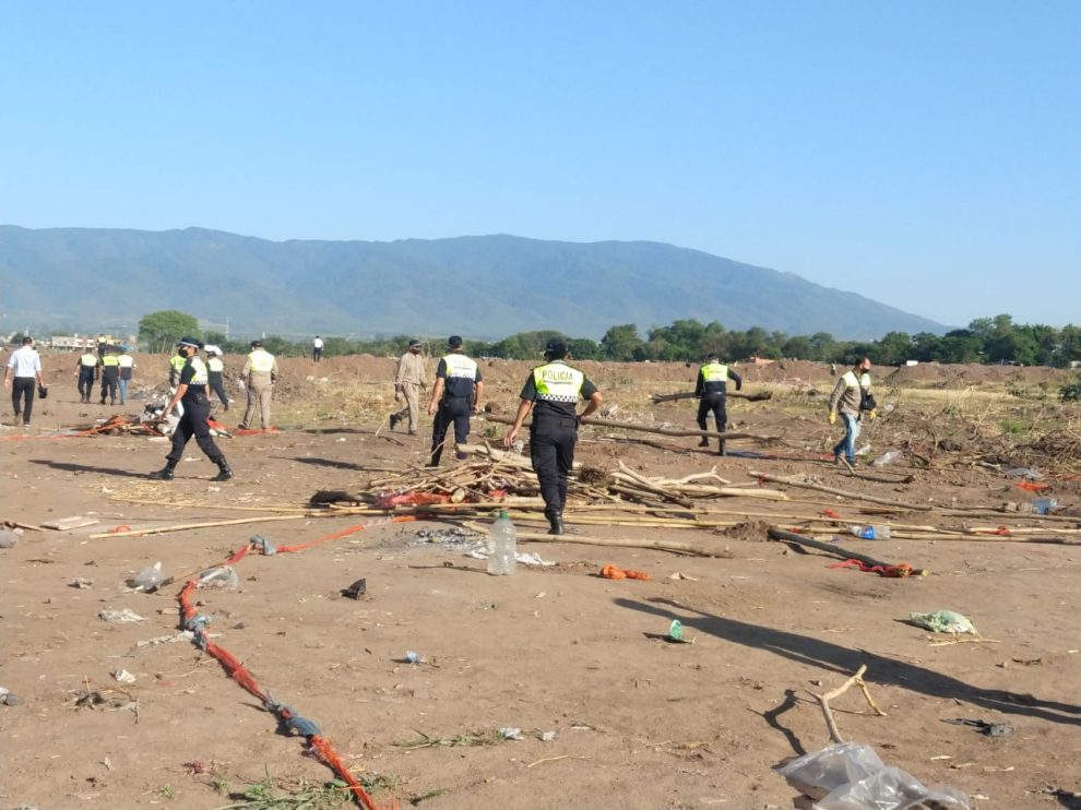 En el terreno de 37 hectáreas trabajaron efectivos del Grupo Cero, Caballería, Infantería, agentes y suboficiales que rodearon a pie todo el lugar para desarrollar la orden de desalojo que no tuvo resistencia por parte de los pocos habitantes que habían quedado en ese lugar con sus casillas.