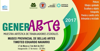 El Ente Cultural y la Red de Mujeres Solidarias de la Provincia convocan a los empleados de la administración pública a participar de la XII Edición de la Muestra Generarte 2017.