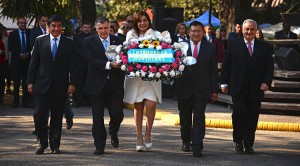 En el acto Jaldo, la comitiva del Poder Ejecutivo provincial, representantes del Colegio de Abogados del Sur tucumano y Rotary Club depositaron ofrendas florales a los pies de la estatua del pensador.