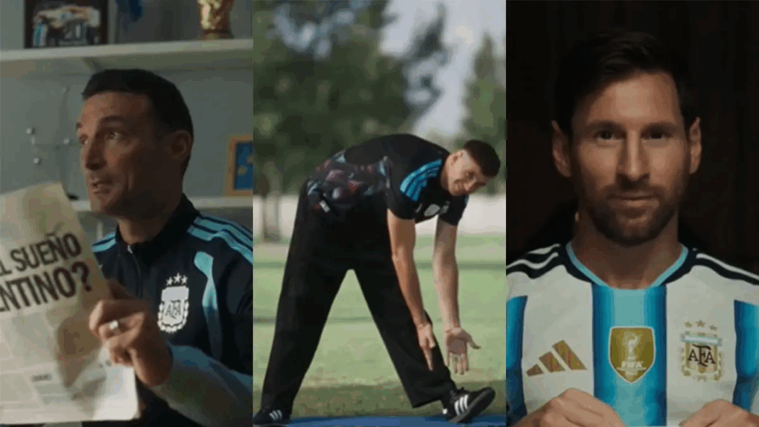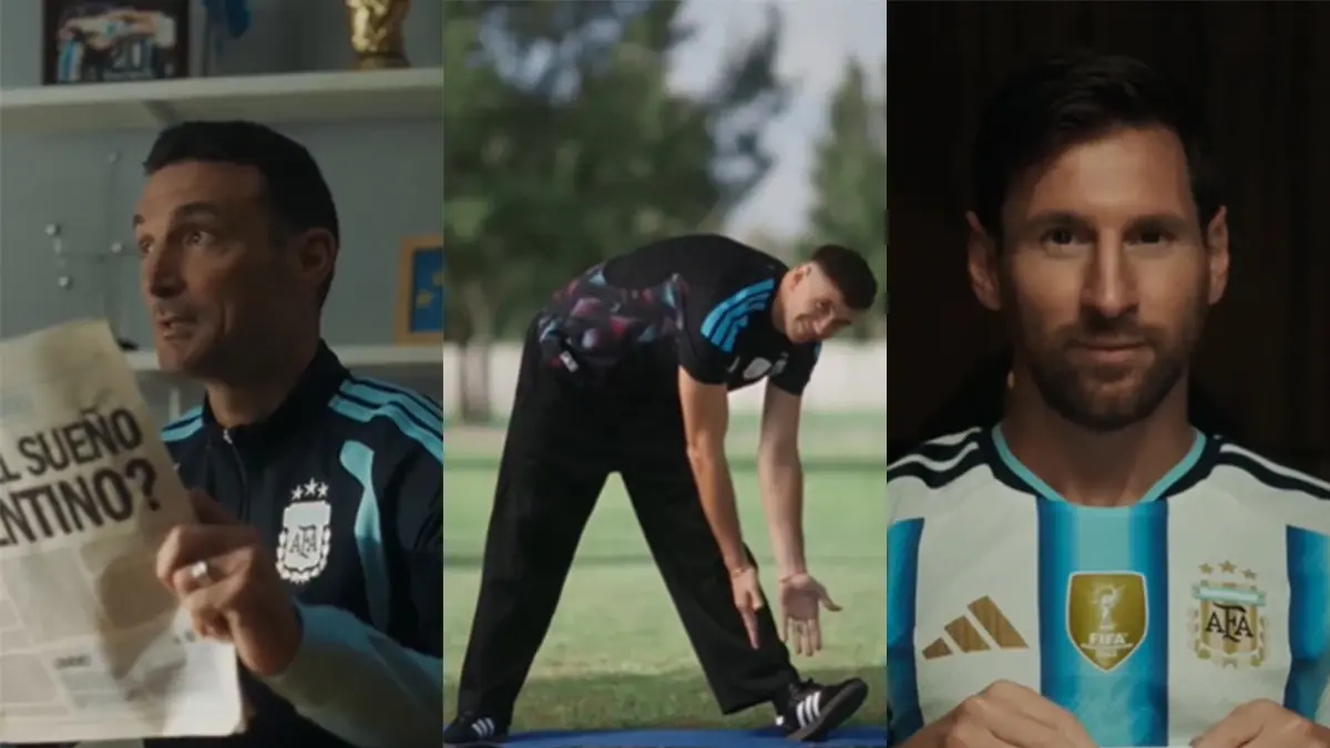 Nicolás Otamendi, Cuti Romero, Alexis Mac Allister, Gio Lo Celso, Juan Foyth y Nico Taglaifico, algunos de los jugadores que pasan por el spot, mezclados entre otros más jóvenes como Nico Paz, Giuliano Simeone, Valentín Barco y Valentín Carboni, además de Franco Mastantuono y Claudio Echeverri, que juegan un partido de metegol.