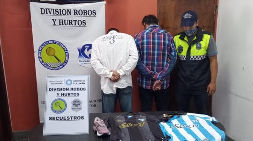 Al notar su nerviosismo, los efectivos les solicitaron que se identificaran y mostraran sus pertenencias. En una bolsa llevaban dos camisetas de fútbol nuevas y una zapatilla con la etiqueta de exposición en un local de artículos de deporte de la zona.