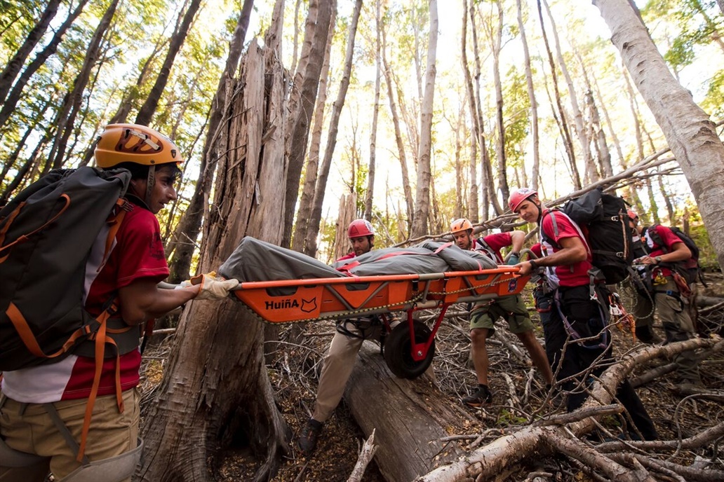 En INVAP, la búsqueda de un diseño para una camilla de rescate llevó a la organización de un concurso interno. El desafío tenía una serie de requerimientos técnicos: la camilla debía pesar menos de 15 kilos y poder ser desarmada para ser llevada por al menos dos rescatistas. Debía poder deslizarse en la nieve como un trineo y tener una rueda para deslizarse como una carretilla para su traslado en senderos. Debía poder ser bajada por paredes verticales mediante la técnica de rápel y permitir el izado desde un helicóptero. También debía poder flotar con una persona en su superficie, para el caso en que el rescate fuese más simple por vía lacustre. Por último, debía poder soportar largas temporadas a la intemperie en alta montaña en caso de no poder ser retirada, lo que implica resistencia a fuertes cambios de temperatura y al efecto de los rayos ultravioletas.