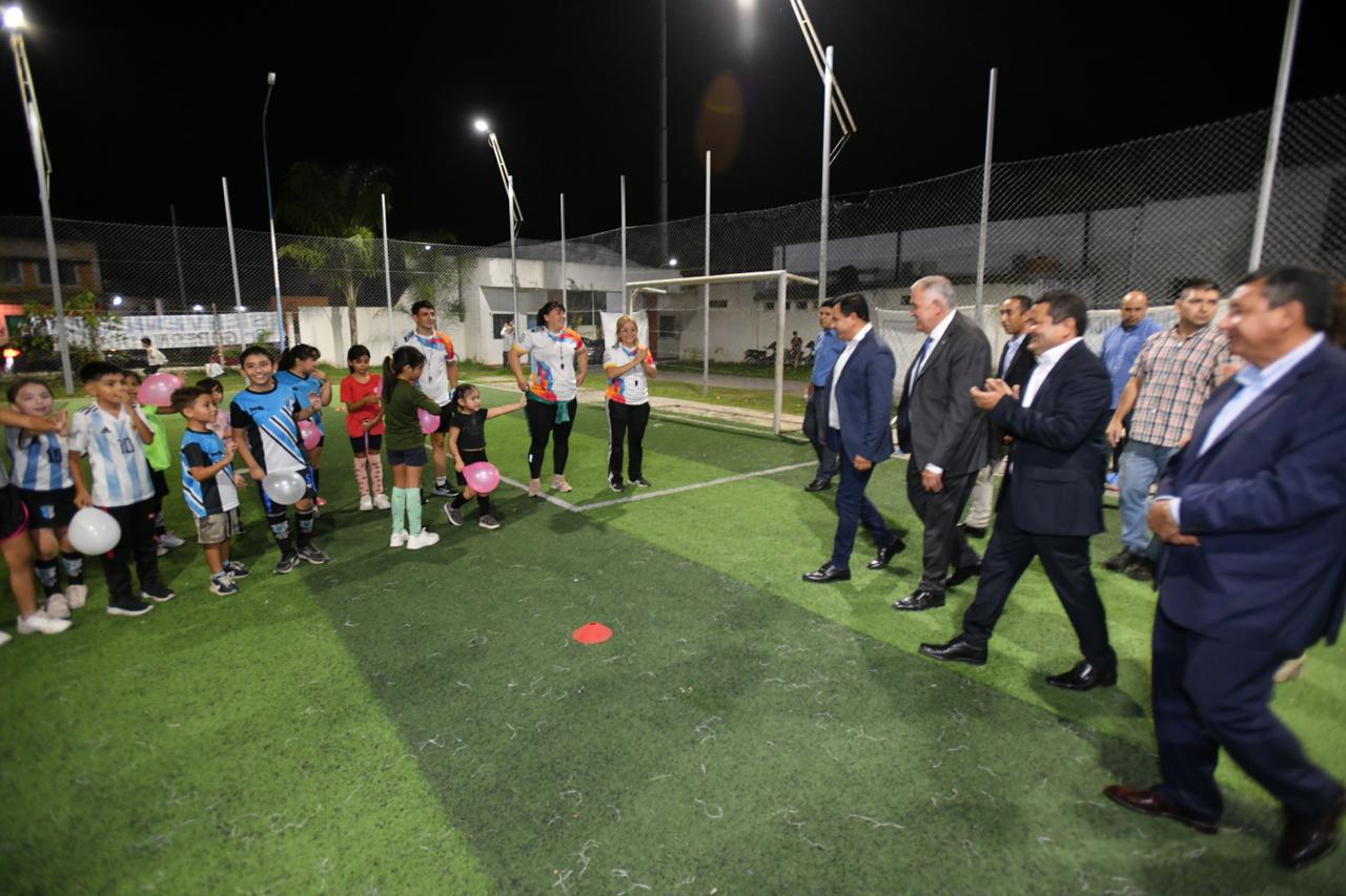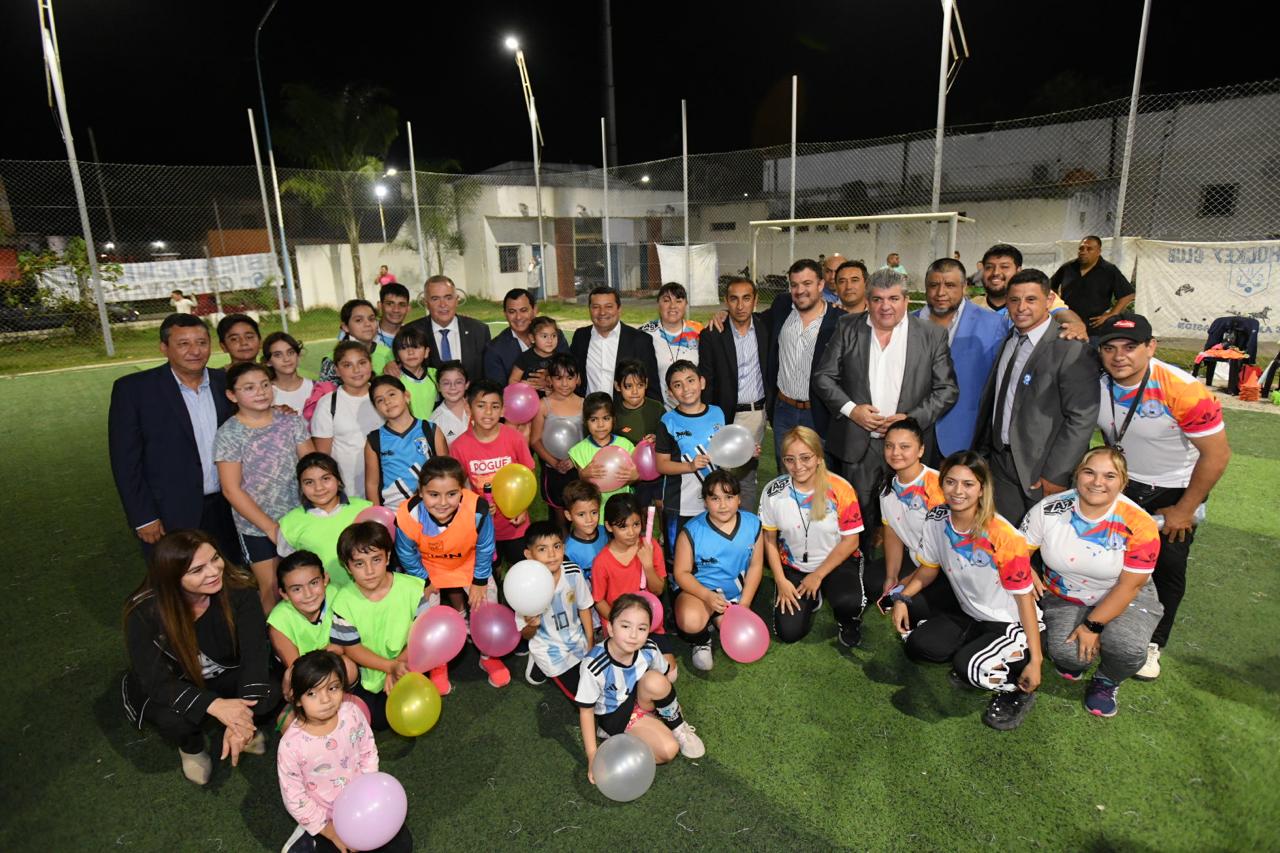 En su recorrido junto al gobernador Osvaldo Jaldo, valoró la visita al complejo polideportivo local, donde observó la participación activa de niños, adolescentes y adultos en distintas disciplinas deportivas, como hockey, vóley, básquet, pádel y newcom.