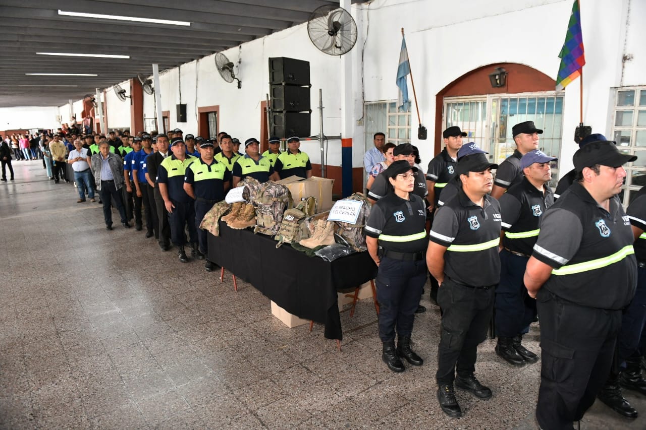 En las instalaciones del Predio Ferial, el gobernador, Osvaldo Jaldo, realizó la entrega de equipamiento e indumentaria para los cuerpos de vigías y tránsito a 25 comunas de la provincia.