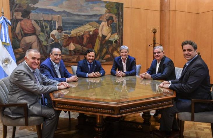La reunión se concretó en Buenos Aires, en el Palacio de Hacienda. También participaron el jefe de Gabinete, Guillermo Francos; el vicejefe de Gabinete, Lisandro Catalán; los gobernadores de Salta, Gustavo Sáenz; de Catamarca, Raúl Jalil.