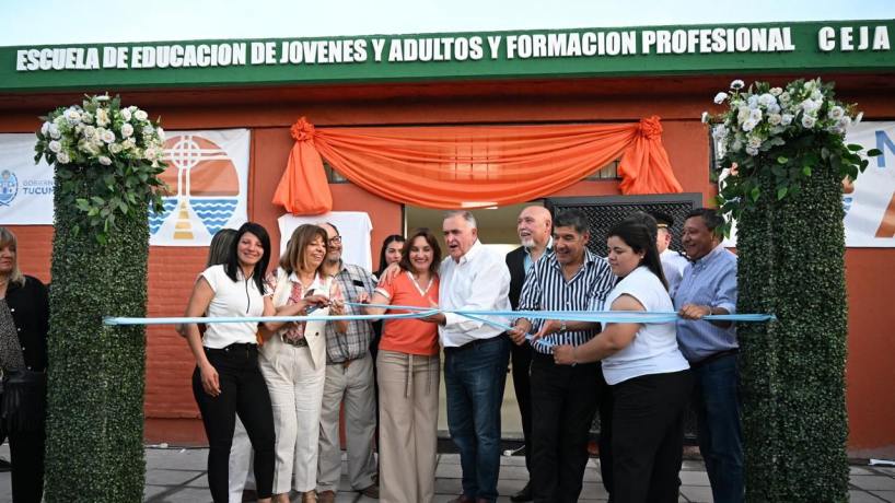 Jaldo habilitó el flamante edificio escolar que funcionará como CEJA Alderetes Sub-sede N° 11 y CEBA N° 1/54. El espacio también ofrecerá trayectos de formación profesional en oficios como sublimación artesanal, marroquinería, confección a medida y electricidad domiciliaria.