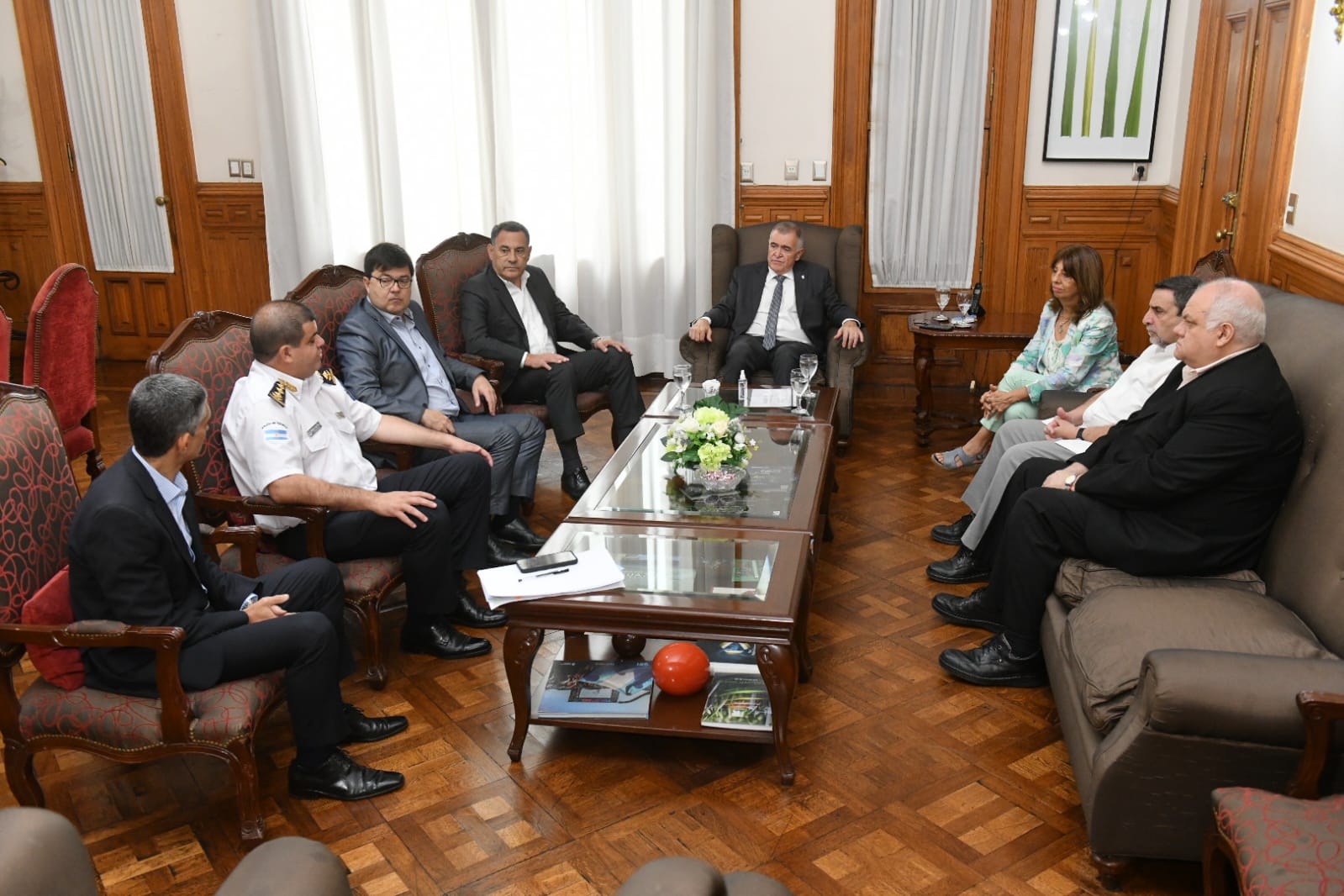 Del encuentro participaron el ministro de Gobierno y Justicia, Regino Amado; el ministro de Seguridad, Eugenio Agüero Gamboa; la ministra de Educación, Susana Montaldo; el ministro de Desarrollo Social, Federico Masso; el ministro de Salud Pública, Luis Medina Ruíz; el secretario general de la Gobernación, Federico Nazur; y el jefe de Policía, Joaquín Girvau Olleta.
