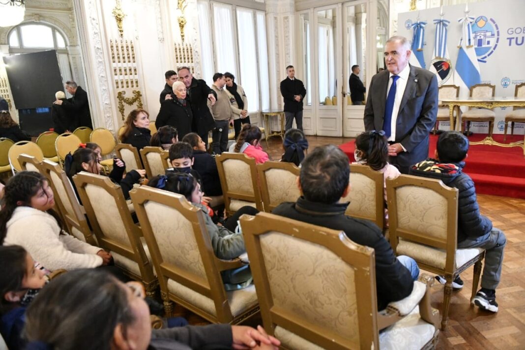 El gobernador, Osvaldo Jaldo, recibió en Casa de Gobierno a los alumnos y docentes de la Escuela N° 10 Claudia Vélez de Cano, de Amaicha del Valle y de la Escuela Luis Pasteur, de Pozo del Alto, departamento Cruz Alta, quienes participaron de una visita educativa en el marco de un programa que busca acercar a los más pequeños a los espacios históricos y culturales de la provincia.