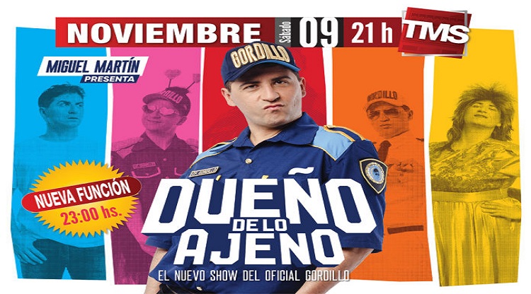 El 9 de noviembre a las 21 y 23 horas, en el Teatro Mercedes Sosa, Miguel Martín presenta dos funciones de “Dueño de lo ajeno”, un show completamente renovado, que completa la trilogía de shows referidos al robo. Una idea que comenzó con «Delincuente del humor», siguió con «Choreando a lo grande» y que ahora llega a su final.