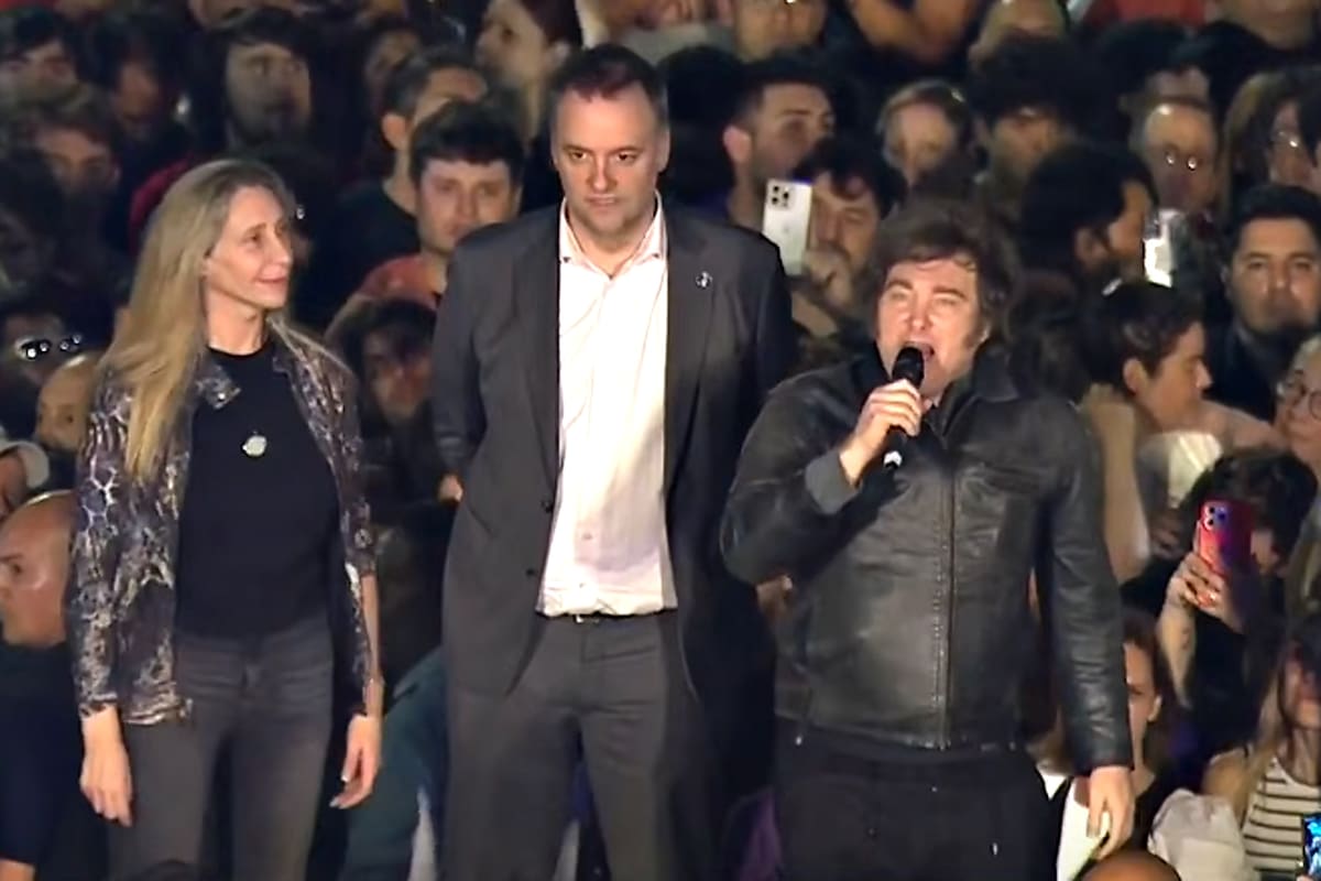 Apenas pasadas las 20, con la característica música de “hola a todos, soy el león”, el Presidente se acercó rodeado de jóvenes con camisetas violetas al escenario a donde lo esperaba su comitiva y Gonzalo Roca, el número 1 de la lista libertaria, a quien indudablemente vino a posicionar el Presidente. También estuvo el diputado y jefe de campaña, Gabriel Bornoroni.