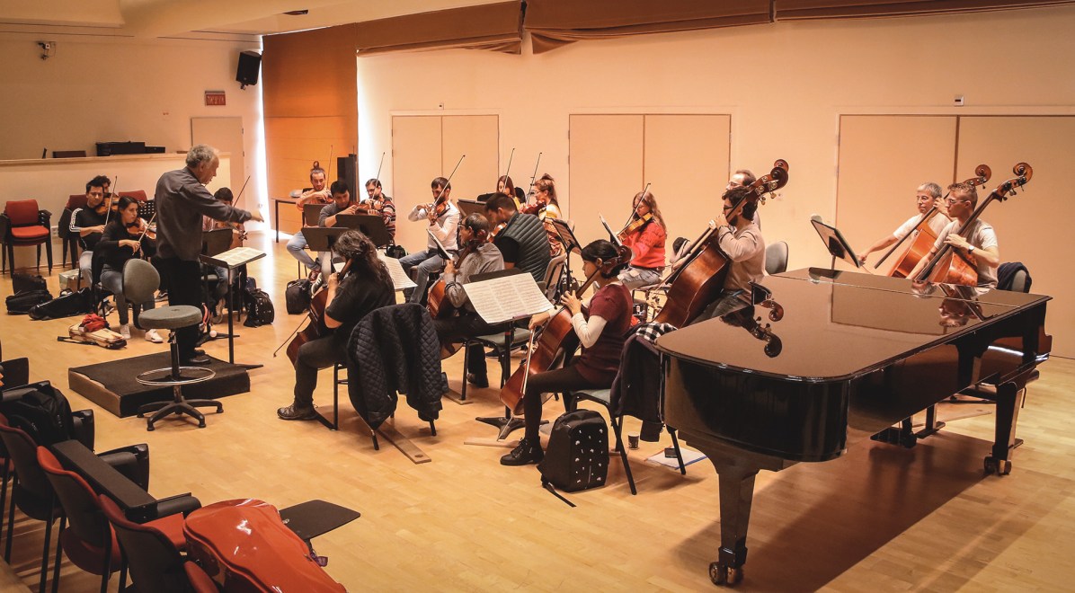 Los músicos de la Orquesta Estable ensayan junto al director israelí Mtro. Yoav Talmi, de cara al concierto que ofrecerán el viernes 16 de Febrero en el auditorio Clairmont de The Buchmann Mehta School of Music de TelAviv.