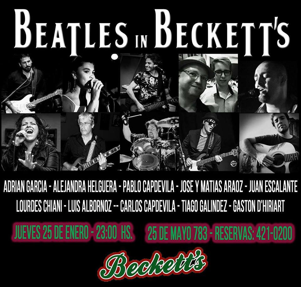 En el restó de calle 25 de Mayo 783, se podrá disfrutar de un recorrido por los grandes éxitos de los Beatles. El espectáculo contará con la participación de Adrián García, Alejandra Helguera, Pablo y Carlos Capdevila, José y Matías Aráoz, Juan Escalante, Lourdes Chiani, Luis Albornoz, Tiago Galindez y Gastín D´Hiriart.
