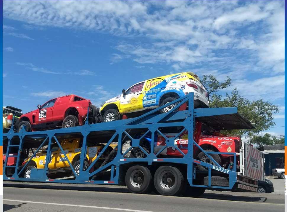 La avanzada del Neme Racing Team ya está en viaje a Lima (en la foto, la Toyota SW4 montada en un camión mosquito); llegará entre el 1 y el 2 de enero. El piloto, Ricardo Neme, se va por avión, el día 3.
