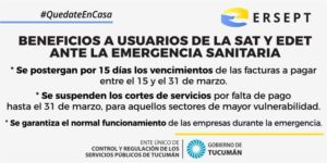 Se determinó postergar por 15 días los vencimientos de aquellas facturas a pagar entre el 15 y el 31 de marzo, como también suspender hasta fin de mes los cortes de servicios a los sectores más vulnerables.