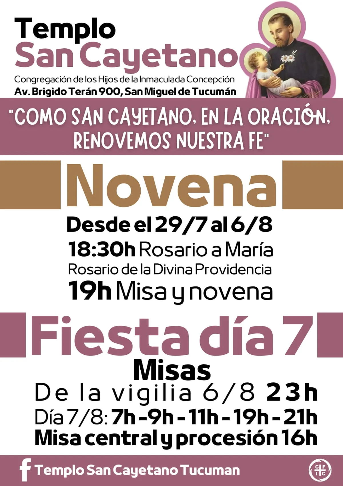 Las actividades se harán bajo el lema «Como San Cayetano, en la oración, renovemos nuestra fe».