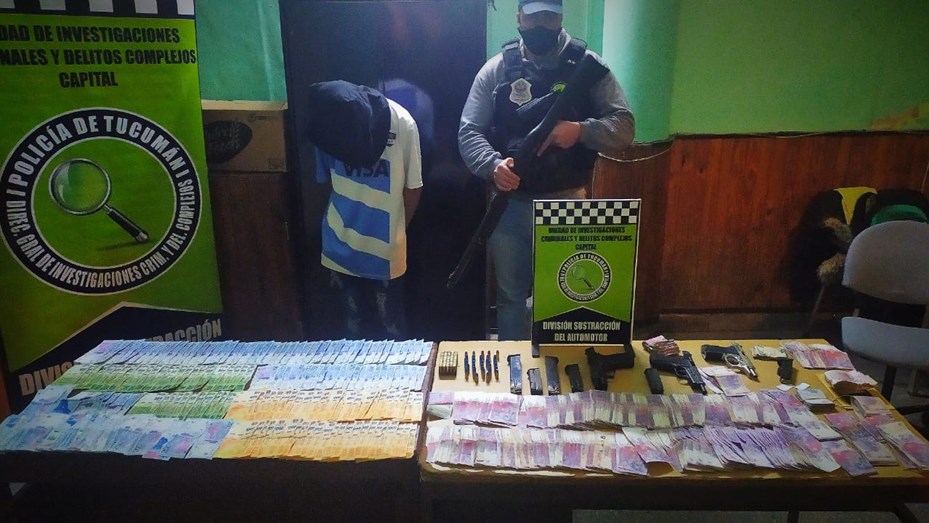 En otro procedimiento, realizado por la División Sustracción de Automotores, se secuestraron $216.100, un auto Ford Focus, tres armas de fuego, un celular y casi 90 cartuchos de diferentes calibres en domicilios de los barrios conocidos como “La Bombilla” y “El Sifón”, donde residen miembros de una banda que se dedica a robar motos y cobrar rescate por ellas. Además, fue aprehendido un joven de 21 años sospechoso de haber asaltado con armas de fuego a una pareja hace un mes, hecho por el que se inició la investigación a cargo del Comisario Adrián Hisa.