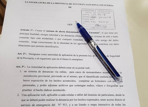 El Legislador tucumano Guillermo Gassenbauer presento un proyecto de ley que permitirá una mayor rapidez y simplicidad a la hora de realizar una denuncia por robo o hurto en la vía pública.