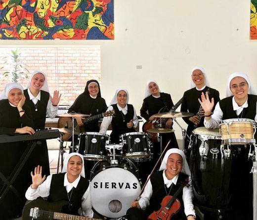 Formada hace cinco años en Perú, Siervas se presentó en varios países de América llevando «el mensaje espiritual de Dios» a ritmo de Rock and roll y pop latino con sus pegajosas canciones, que ellas mismas componen.