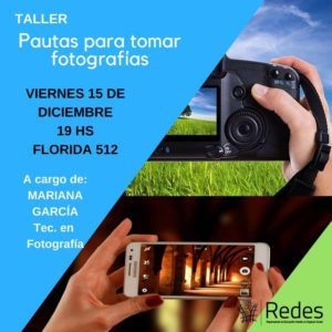 Taller de fotografia gratuito – La Fundación R.E.D.E.S ofrecerá este viernes un taller gratuito sobre pautas para fotografiar. Es abierto a la comunidad, no se requieren conocimientos previos.