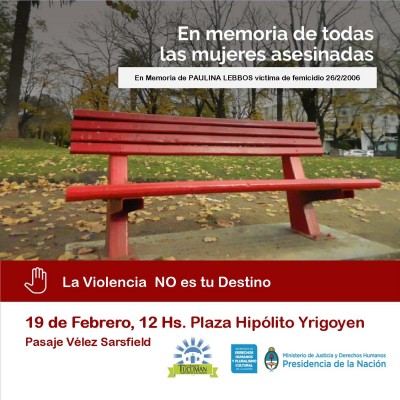 – A las 12, en la plaza Hipólito Yrigoyen, ubicada en pasaje Díaz Vélez Sarsfield en memoria de Paulina Lebbos, fallecida el 26 de febrero de 2006.