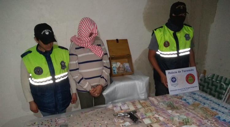 Personal de la División Delitos contra la Propiedad de la Policía de Tucumán, realizó un allanamiento en Villa 9 de Julio, donde se secuestraron sustancias prohibidas, un arma de fuego, más de $160.000, y se aprehendió a una mujer.