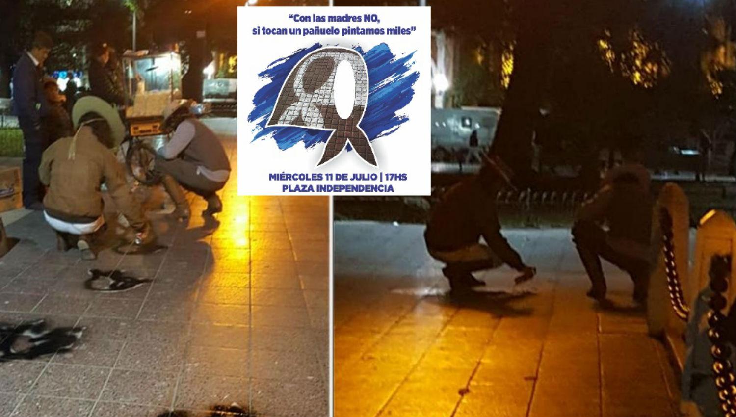 Sin embargo, el sábado a la noche, una testigo vio cómo dos gauchos pintaron los pañuelos en el principal paseo público de la ciudad «porque no los representan».